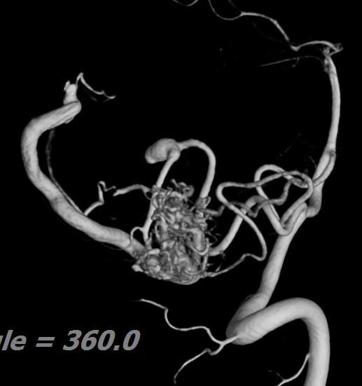 조영증강 CTCTA(CT angiography)을 시행하면 뒤엉킨 벌레뭉치(bag of worms)” 같은 특징적 조영 패턴 나타난다.